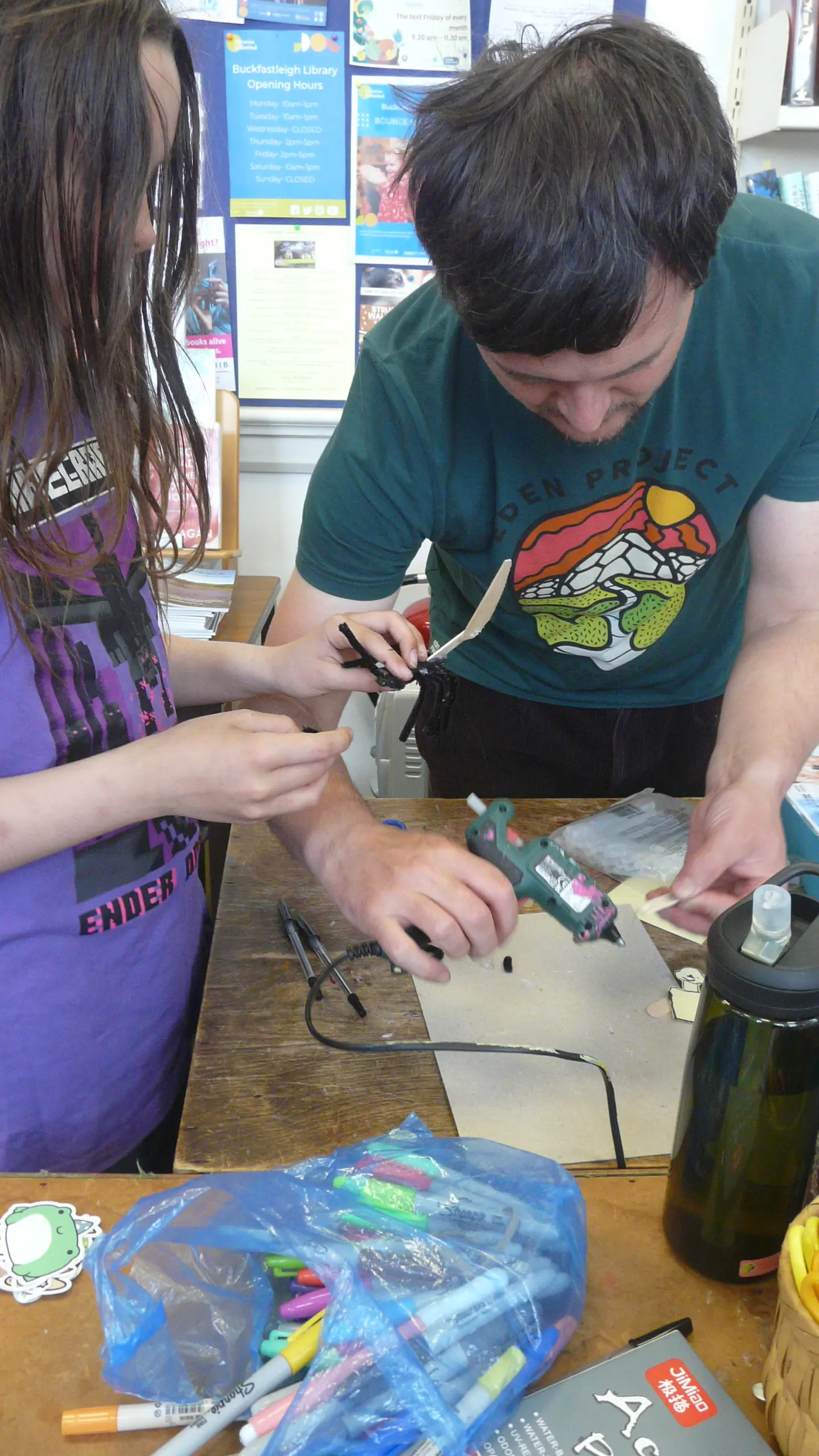 Our local wildlife gardener, Charlie Scullion, has been instrumental in this effort. In addition to tending to various gardens around town and his own allotment, Charlie organised the Open Wildlife Gardens event this summer. Garden owners reported a noticeable increase in interest, particularly in topics like composting, chemical-free gardening, and how to develop wildlife-friendly spaces while maintaining attractive borders. It was a resounding success. Charlie also hosted a children's workshop at the library, where they created models and planted the trough outside the building.